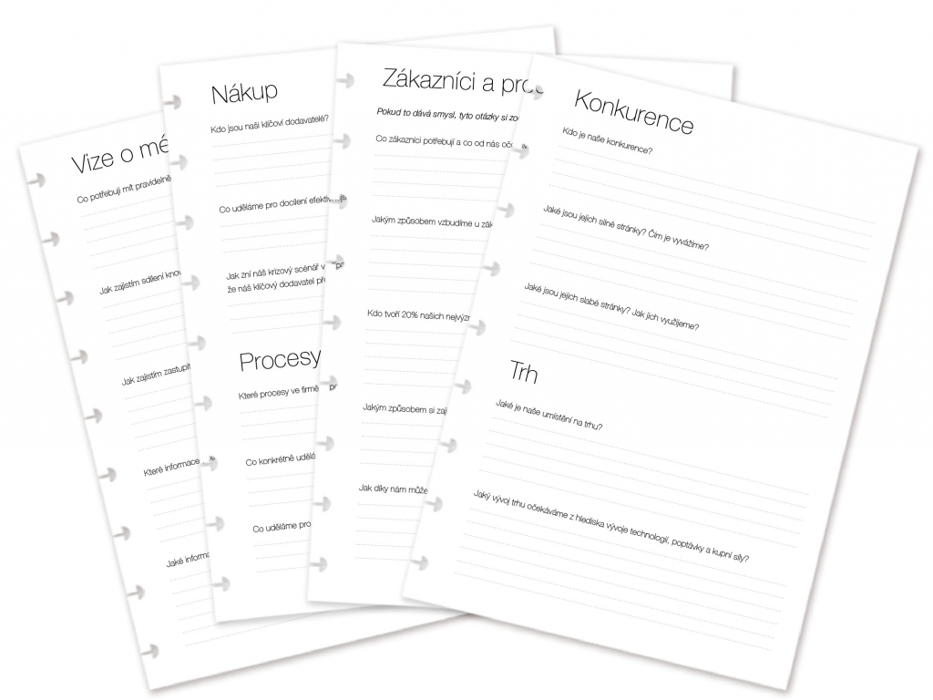- Koučinkové otázky pro manažera (Moje vize, Vize a cíle firmy, Konkurence, Vize o mém týmu, Obchodní cíle)